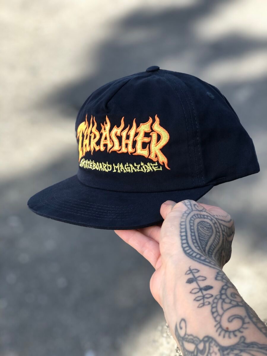 BONÉ THRASHER FIRE LOGO DESCONSTRUÍDO SNAPBACK ABA RETA AZUL MARINHO
