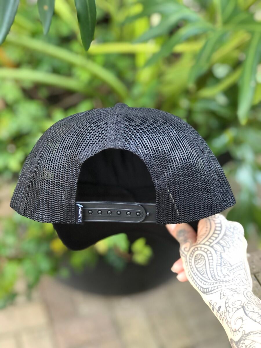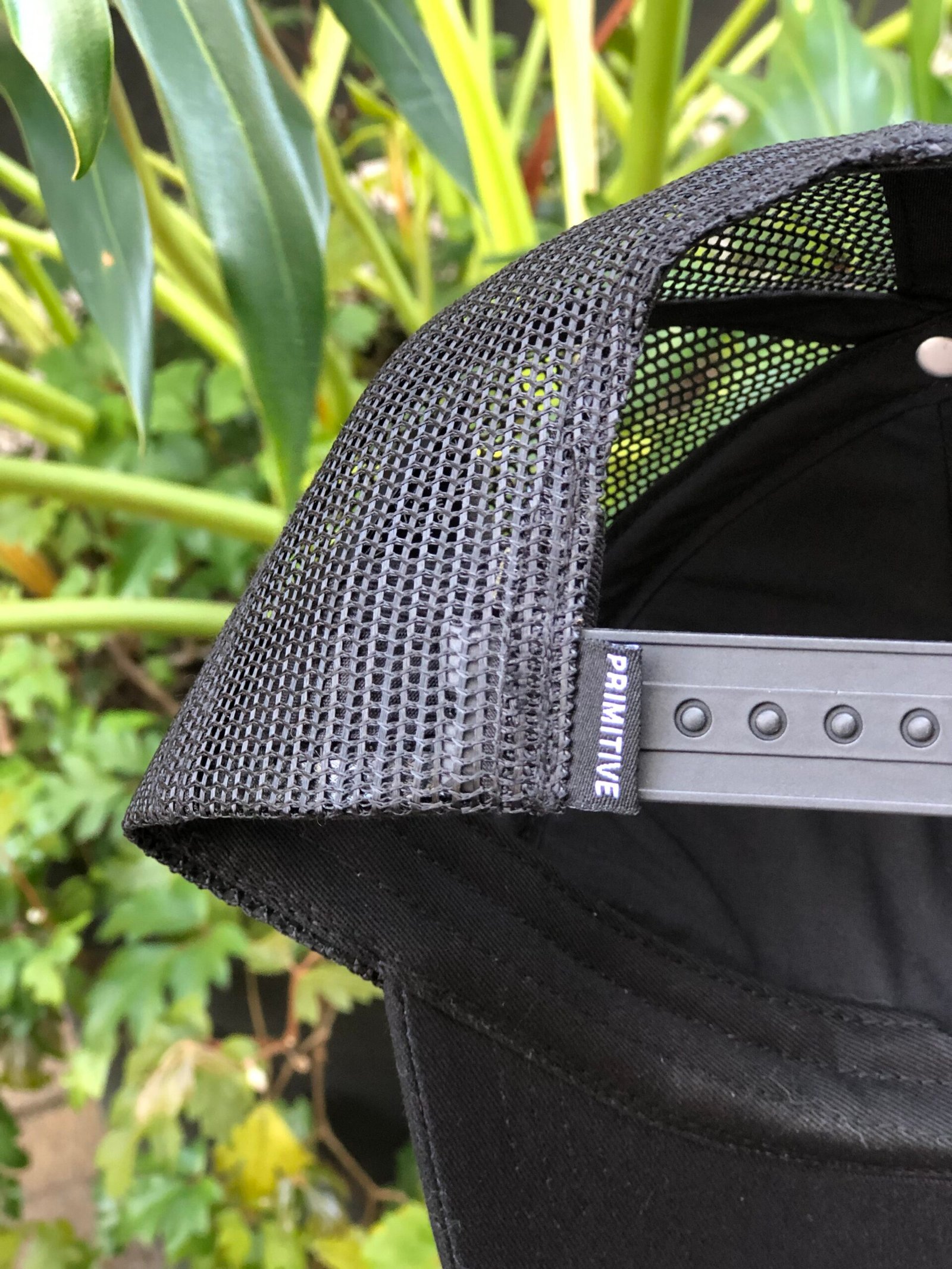 Boné Primitive Skateboarding modelo trucker importado e com ajuste na parte traseira