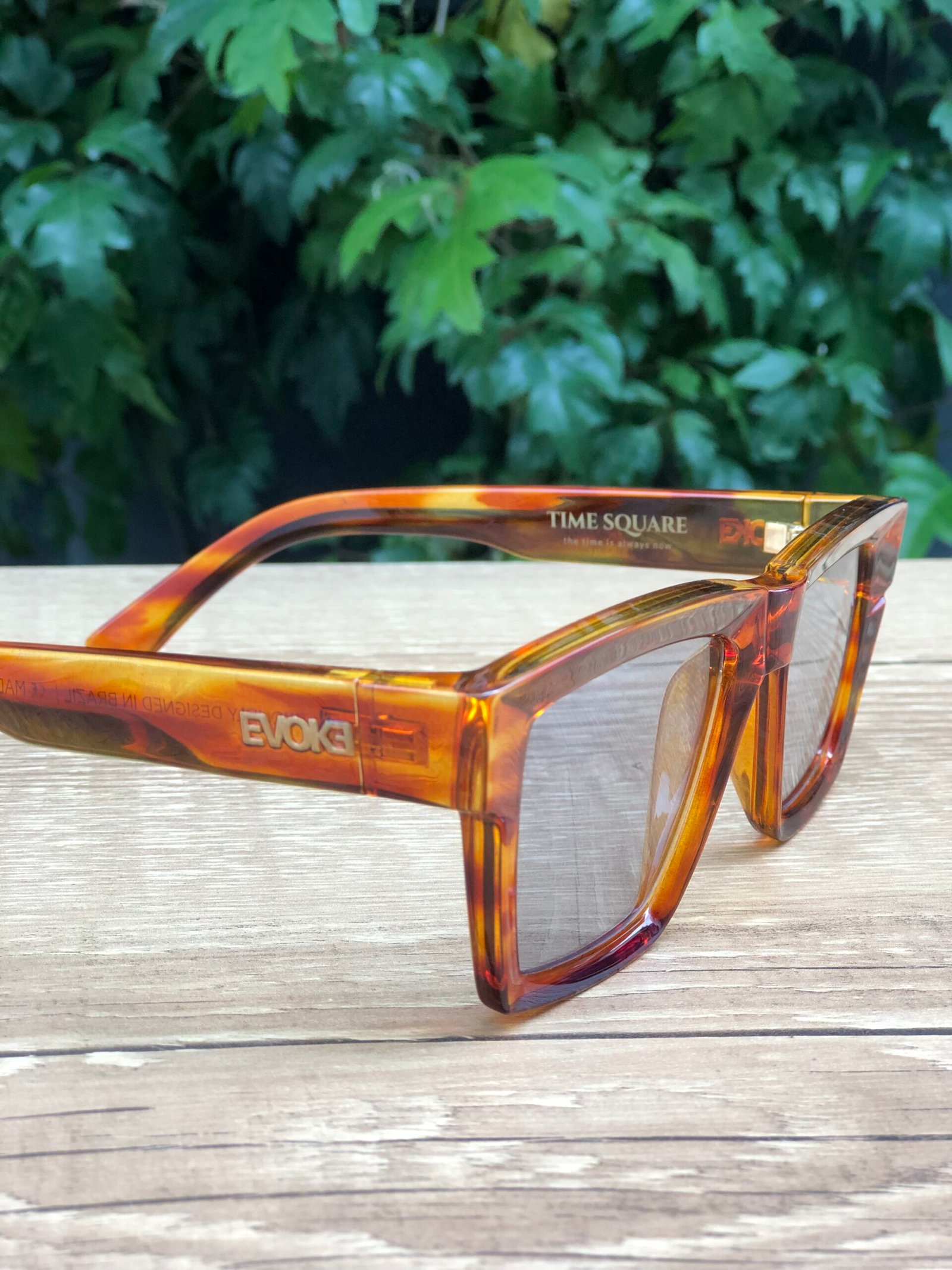 Óculos de Sol Evoke Time Square G22 Havanna Retro Gold Light/Green Total é um acessório de destaque que combina design robusto e moderno com a qualidade e proteção da marca Evoke.